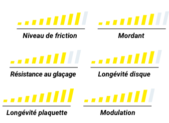 Les Pagid RSL1 sont dotées de matériaux performants et endurants avec une vaste plage thermique d’utilisation, tout en conservant une faible conductivité de la chaleur. Elles offrent une très bonne modulation du freinage pour un freinage progressif et sans effort, ce qui permet une faible usure des plaquettes et des disques.